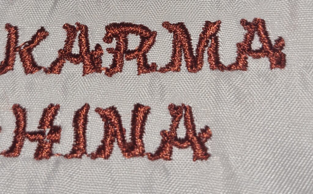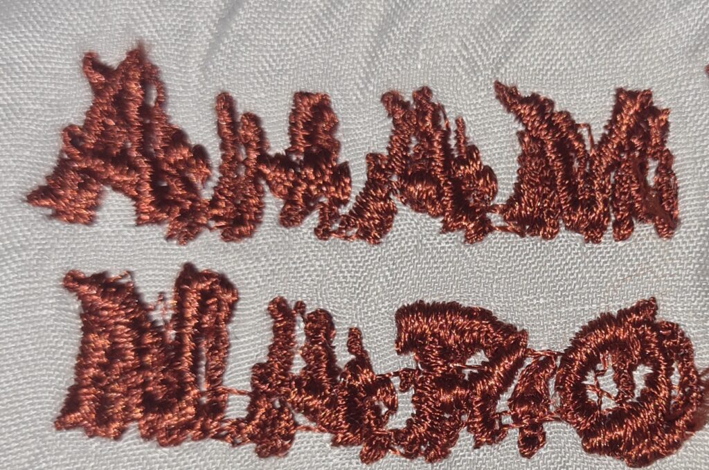 In an attempt to make the stitch thicker and to cover up errors in some of the lesser well developed words a second run of the stitch resulted in this :